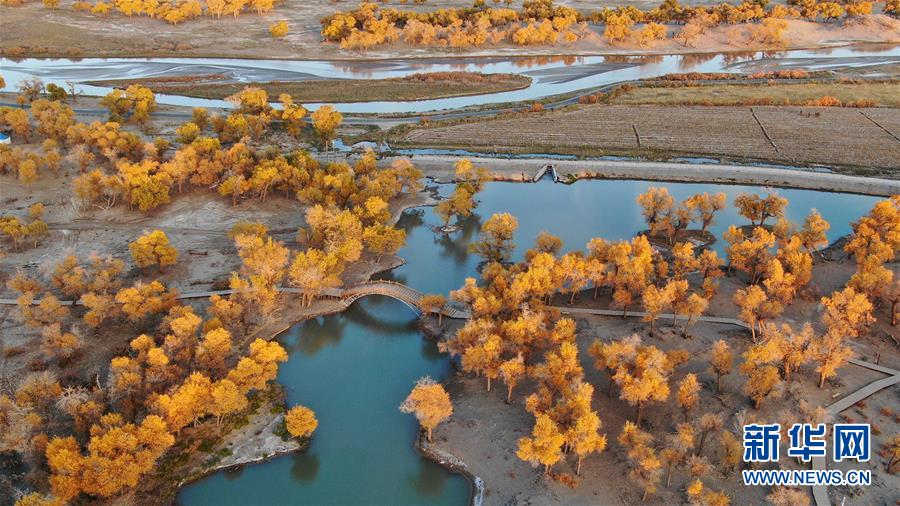 這是在內(nèi)蒙古自治區(qū)額濟(jì)納旗拍攝的胡楊林(10月10日無人機(jī)拍攝)。 金秋時(shí)節(jié),內(nèi)蒙古自治區(qū)額濟(jì)納旗胡楊林如同披上金裝,成為大漠中的一抹亮色,吸引眾多中外游客前來觀賞游玩。 新華社記者鄒予攝
