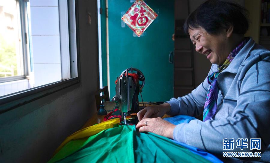 11月13日,鄒勤敏在家中利用舊雨傘制作理發(fā)用的圍布。
