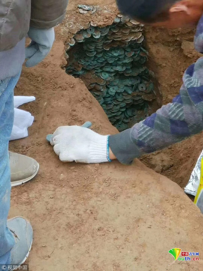 經(jīng)過(guò)發(fā)掘清理,古幣中最早的是唐開(kāi)元年間的,最晚的為南宋時(shí)期,絕大多數(shù)都是北宋時(shí)期的錢幣。白水縣文物管理委員會(huì)主任趙張鋒介紹,這些古幣數(shù)量比較大,一般個(gè)人很少持有如此多的錢幣,初步分析可能是當(dāng)時(shí)一個(gè)錢莊存放的錢幣,有可能當(dāng)時(shí)遇到戰(zhàn)亂,匆忙之下進(jìn)行埋藏,但后來(lái)再無(wú)機(jī)會(huì)挖出。