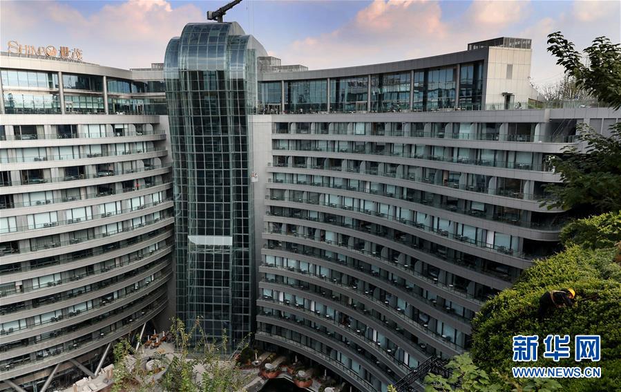 一名工人(右下)在位于酒店頂樓附近的崖壁上施工(11月13日攝)。 位于上海松江的世茂洲際酒店11月15日正式開門營業(yè)。這家在一個(gè)廢棄采石礦坑內(nèi)建成的酒店成為上海又一新景。 新華社記者 方喆 攝