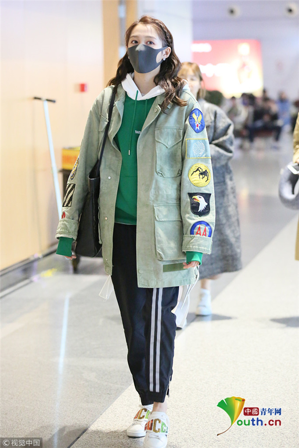 關(guān)曉彤穿男友風(fēng)外套酷中帶甜 摘口罩露清純美貌