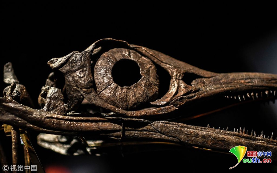 當(dāng)?shù)貢r間2018年11月19日,法國巴黎,在展出中的1.8億年前侏羅紀(jì)時期的恐龍骨架,將于11月20日在Drouot拍賣行拍賣。