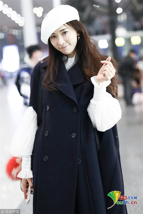 11月19日,北京,林志玲現(xiàn)身機場,林志玲穿黑色大衣配貝雷帽溫暖俏皮,揮手賣萌露修長美腿女神氣質爆棚。