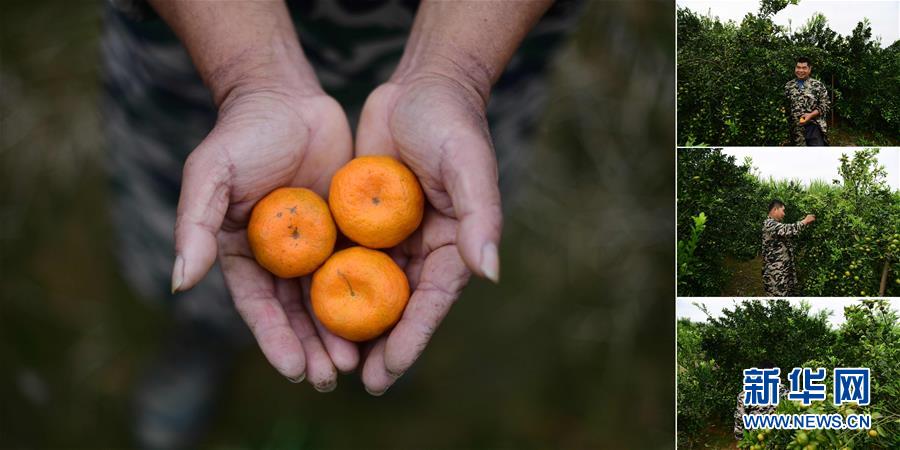 拼版照片:左圖為在永樂(lè)鎮(zhèn)四莫村,莫文振在果園里手捧剛剛摘下的桔子;右圖為莫文振在果園里勞作(照片均攝于11月19日)。莫文振從2012開(kāi)始種植柑桔和甘蔗,2016年實(shí)現(xiàn)脫貧。 廣西融水苗族自治縣是國(guó)家扶貧工作重點(diǎn)縣,全縣“九山半水半分田”,生活生產(chǎn)環(huán)境較為惡劣,脫貧攻堅(jiān)任務(wù)艱巨,目前還有7.68萬(wàn)貧困人口。面對(duì)經(jīng)濟(jì)發(fā)展落后、貧困面廣且程度深的現(xiàn)狀,當(dāng)?shù)匕衙撠毠?jiān)與創(chuàng)新產(chǎn)業(yè)扶持相結(jié)合,依托生態(tài)資源優(yōu)勢(shì),實(shí)施“特色產(chǎn)業(yè)富民行動(dòng)”,通過(guò)發(fā)展特色民族旅游、林下經(jīng)濟(jì)和特色養(yǎng)殖業(yè)等扶貧產(chǎn)業(yè),帶動(dòng)貧困群眾依靠勤勞的雙手,拔窮根摘窮帽,實(shí)現(xiàn)脫貧致富。據(jù)了解,目前全縣貧困戶參與特色產(chǎn)業(yè)發(fā)展的有2.9萬(wàn)戶,扶貧產(chǎn)業(yè)覆蓋率達(dá)95%。 新華社記者 黃孝邦 攝