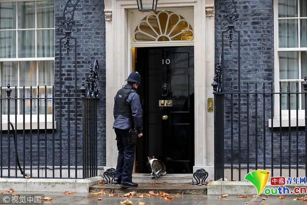 2018年11月22日訊,當(dāng)?shù)貢r(shí)間2018年11月20日,英國(guó)倫敦,在英國(guó)天空電視臺(tái)當(dāng)日就英“退歐”相關(guān)會(huì)議進(jìn)行直播報(bào)道時(shí),攝像機(jī)意外捕捉到了一副畫(huà)面:被關(guān)在門外的拉里起先“安靜且耐心地”蹲坐在唐寧街10號(hào)的黑色大門前,過(guò)了一會(huì)兒它淡淡地撇了一眼正在不遠(yuǎn)處執(zhí)勤的警察。后者顯然立馬接收到了“首席貓”的眼神示意,他快速走上前來(lái),替拉里敲開(kāi)門,助它重返溫暖的室內(nèi)。據(jù)悉,唐寧街10號(hào)那扇赫赫有名的黑色大門只能由內(nèi)部打開(kāi)。