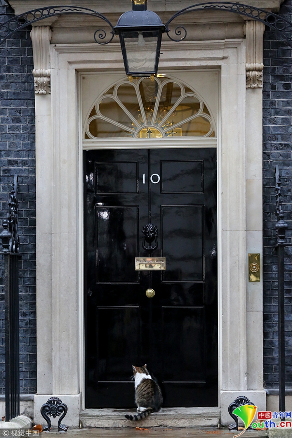 被關(guān)在門外的拉里起先“安靜且耐心地”蹲坐在唐寧街10號(hào)的黑色大門前。
