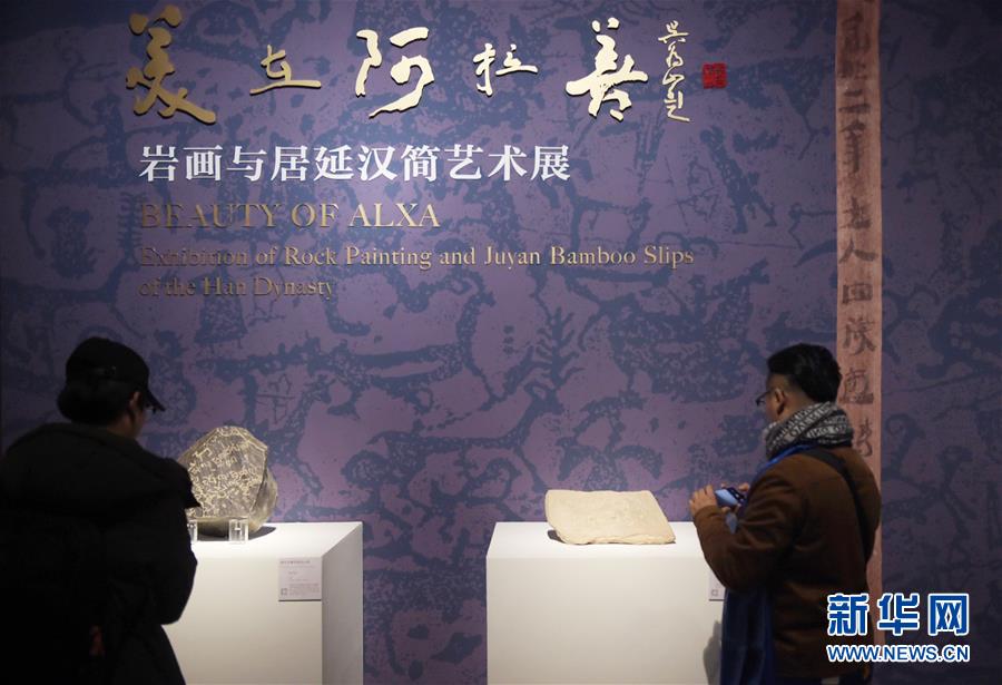 當(dāng)日,“美在阿拉善——巖畫與居延漢簡藝術(shù)展”在北京中國美術(shù)館開幕,共展出巖畫實(shí)物、雕塑、拓片、漢簡等共計100多件。 新華社記者 魯鵬 攝