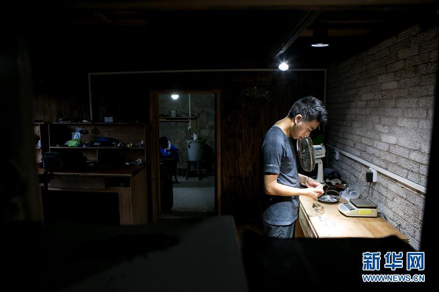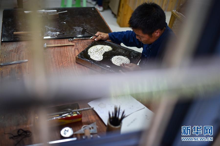 龍懂陽的弟弟龍?zhí)栆彩倾y飾工藝傳人。和哥哥不同,弟弟主打的是銀飾文化體驗游,用自家傳統(tǒng)苗寨開設(shè)民宿,游客在此居住的同時,還能學(xué)習(xí)體驗銀飾品制作。每年暑期一到,家長孩子絡(luò)繹不絕。新客源、新銷路、新模式帶動雷山縣銀飾業(yè)不斷發(fā)展壯大,成為脫貧攻堅的重要產(chǎn)業(yè)。2017年,雷山縣控拜、麻料、烏高三個村銀飾品及相關(guān)產(chǎn)業(yè)銷售額超過1.5億元,吸引很多外出打工的年輕人回家創(chuàng)業(yè)。苗寨鍛銀聲在綠水青山間響遍千戶,也漸漸走出大山,聲名遠(yuǎn)播。新華社記者 李芒茫 攝