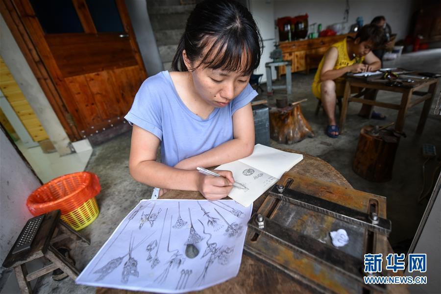 唐白梅是美國一所高校首飾設(shè)計專業(yè)的在讀研究生,專門利用暑假時間到雷山縣學(xué)習(xí)銀飾工藝。 “以前挑著擔(dān)賣貨,賣不完回不了家;現(xiàn)在有了網(wǎng)上銷售,太方便了?!痹谫F州省黔東南苗族侗族自治州雷山縣西江鎮(zhèn)控拜村,50歲的銀匠龍懂陽拿著手機(jī)查看全國各地發(fā)來的銀飾訂單,七月份的銷售額輕松超過了一萬元。雷山縣的銀匠主要集中在控拜、麻料、烏高三個村,銀飾加工已經(jīng)有600多年歷史。作為銀匠家族的第九代傳人,龍懂陽從14歲開始便挑著銀飾走村串鄉(xiāng),上門推銷。但山鄉(xiāng)偏僻路途遙遠(yuǎn),客源又有限,這種方式僅能勉強(qiáng)維持收支。為了賺錢,龍懂陽放棄了傳統(tǒng)手藝,到溫州打工賣皮鞋。隨著家鄉(xiāng)的道路修通,苗寨的游客越來越多,銀飾品打開了新銷路。2014年,龍懂陽建起了銀匠鋪,重拾本行。在當(dāng)?shù)胤鲐毟刹亢涂腿说膯l(fā)下,他建起了銀飾展示廳,開了網(wǎng)店,線上訂單源源不斷。