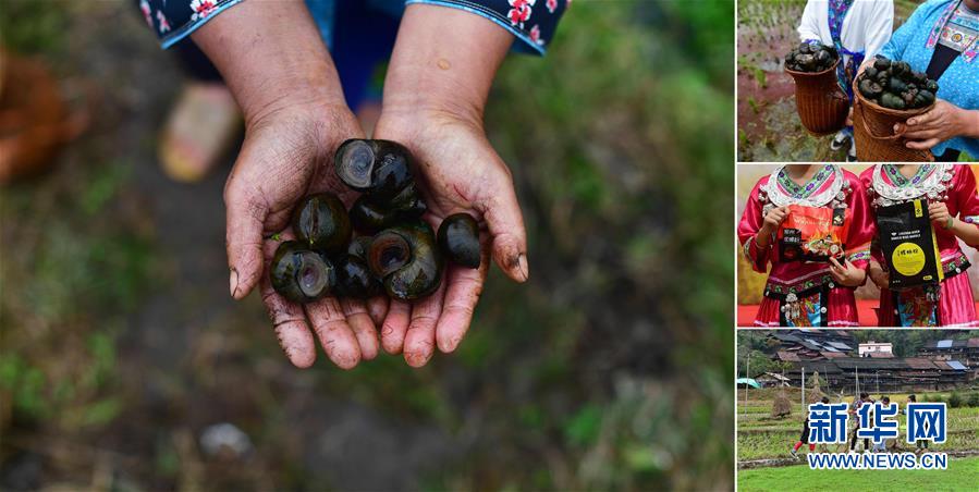 拼版照片:左圖為在拱洞鄉(xiāng)龍令村,貧困戶(hù)龍亞手捧剛剛收獲的田螺(11月17日攝);右上圖為龍亞展示收獲的田螺(11月17日攝);右中圖為龍令村養(yǎng)殖的田螺已經(jīng)成為柳州螺螄粉的原材料(10月28日攝);右下圖為龍亞(右一)在稻田里撈田螺(11月17日攝)。今年,拱洞鄉(xiāng)大力發(fā)展稻田養(yǎng)螺產(chǎn)業(yè),目前,全鄉(xiāng)田螺養(yǎng)殖面積突破4000畝,參與的貧困農(nóng)戶(hù)有600多戶(hù)。 廣西融水苗族自治縣是國(guó)家扶貧工作重點(diǎn)縣,全縣“九山半水半分田”,生活生產(chǎn)環(huán)境較為惡劣,脫貧攻堅(jiān)任務(wù)艱巨,目前還有7.68萬(wàn)貧困人口。面對(duì)經(jīng)濟(jì)發(fā)展落后、貧困面廣且程度深的現(xiàn)狀,當(dāng)?shù)匕衙撠毠?jiān)與創(chuàng)新產(chǎn)業(yè)扶持相結(jié)合,依托生態(tài)資源優(yōu)勢(shì),實(shí)施“特色產(chǎn)業(yè)富民行動(dòng)”,通過(guò)發(fā)展特色民族旅游、林下經(jīng)濟(jì)和特色養(yǎng)殖業(yè)等扶貧產(chǎn)業(yè),帶動(dòng)貧困群眾依靠勤勞的雙手,拔窮根摘窮帽,實(shí)現(xiàn)脫貧致富。據(jù)了解,目前全縣貧困戶(hù)參與特色產(chǎn)業(yè)發(fā)展的有2.9萬(wàn)戶(hù),扶貧產(chǎn)業(yè)覆蓋率達(dá)95%。 新華社記者 黃孝邦 攝