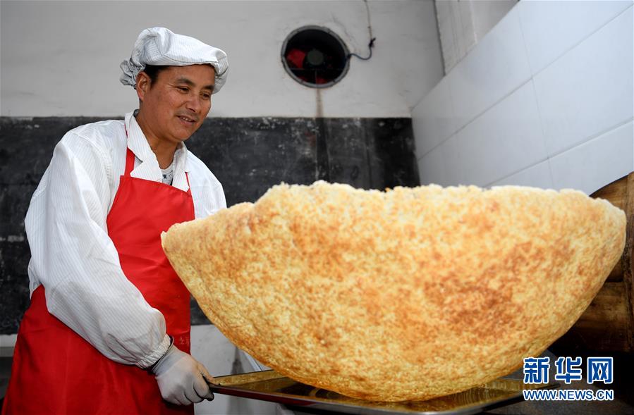 11月22日,汪明祥在鍋巴廠里加工鍋巴。新華社記者劉軍喜攝