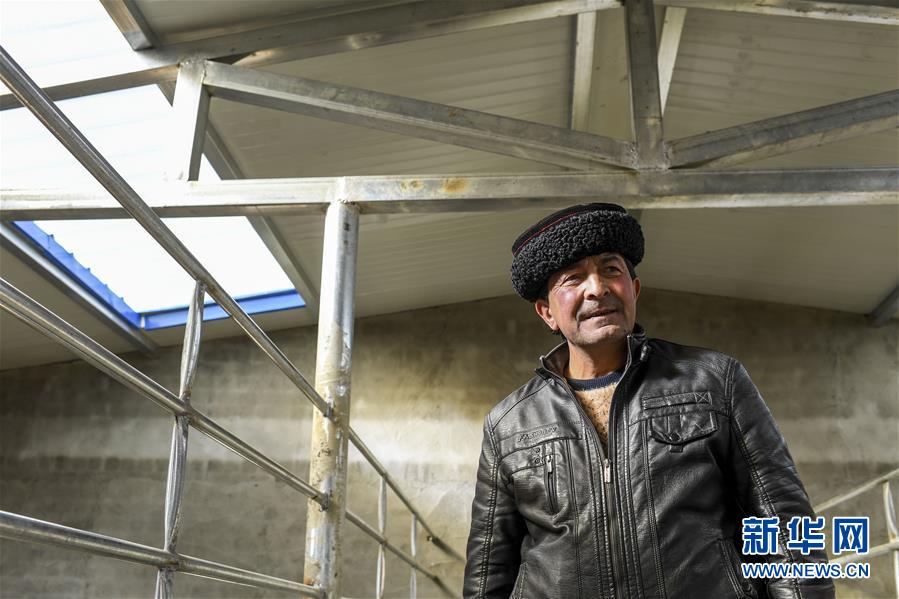 在塔什庫(kù)爾干塔吉克自治縣塔提庫(kù)力易地扶貧搬遷安置點(diǎn),都熱·加爾曼在新修的標(biāo)準(zhǔn)化棚圈內(nèi)參觀(11月18日攝)。新華社記者胡虎虎攝
