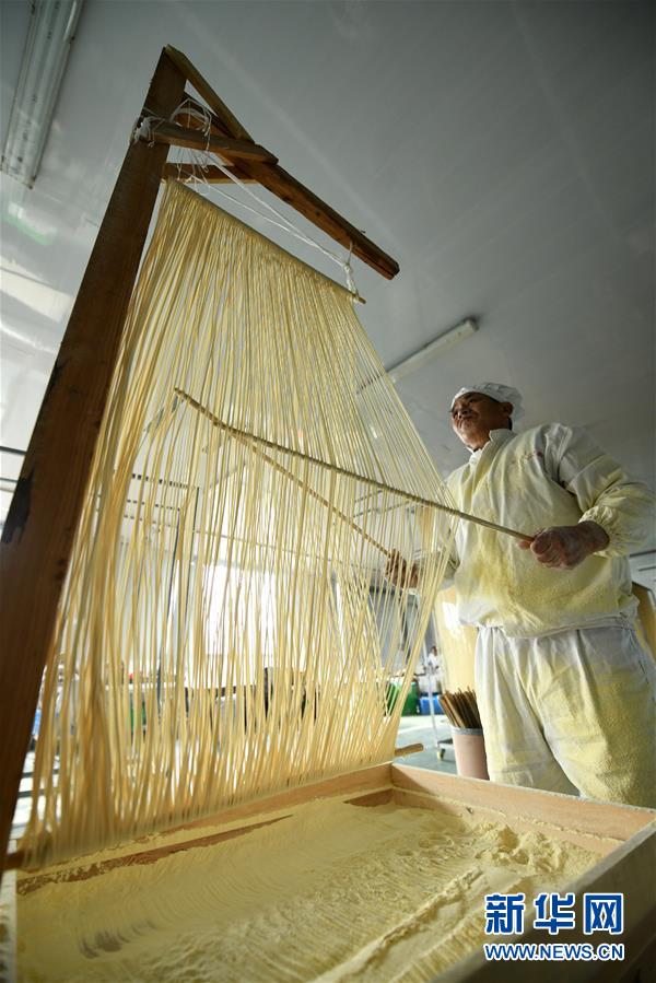 河北石家莊的藁城宮面歷史悠久,因曾進(jìn)貢清朝皇宮而得名。宮面采用手工制作,整個(gè)生產(chǎn)過程包括和面、開條、盤條、上軸、分面等十幾道工序,以“面細(xì)能穿針,空心有韌性”為特色,食用方便,營(yíng)養(yǎng)豐富。藁城宮面制作技藝于2013年入選河北省級(jí)非物質(zhì)文化遺產(chǎn)名錄。