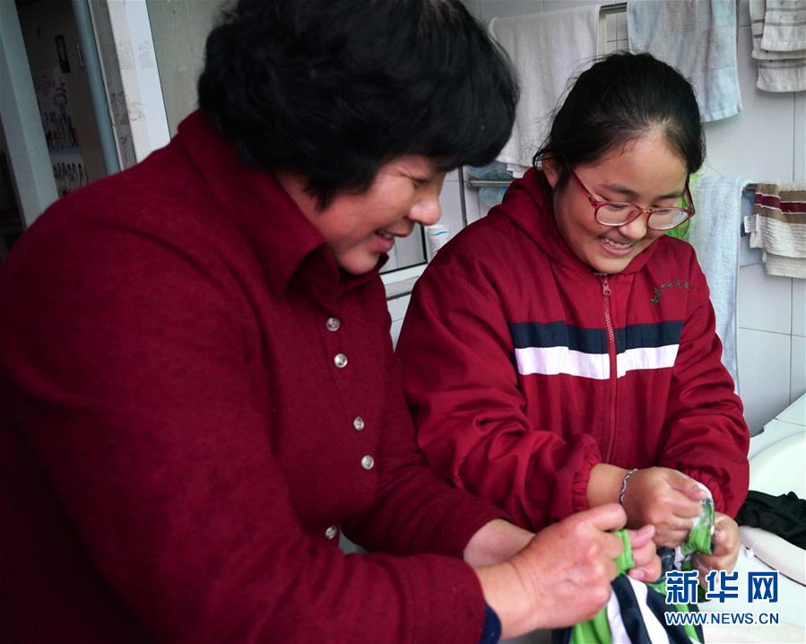 11月16日,劉和平和南昌市第十七中學(xué)西藏班的學(xué)生一起洗衣服。新華社記者 胡晨歡 攝