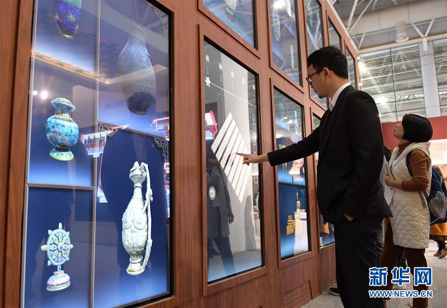 11月23日,幾位觀眾正在操作3D虛擬文物的互動(dòng)展示。新華社記者李賀攝