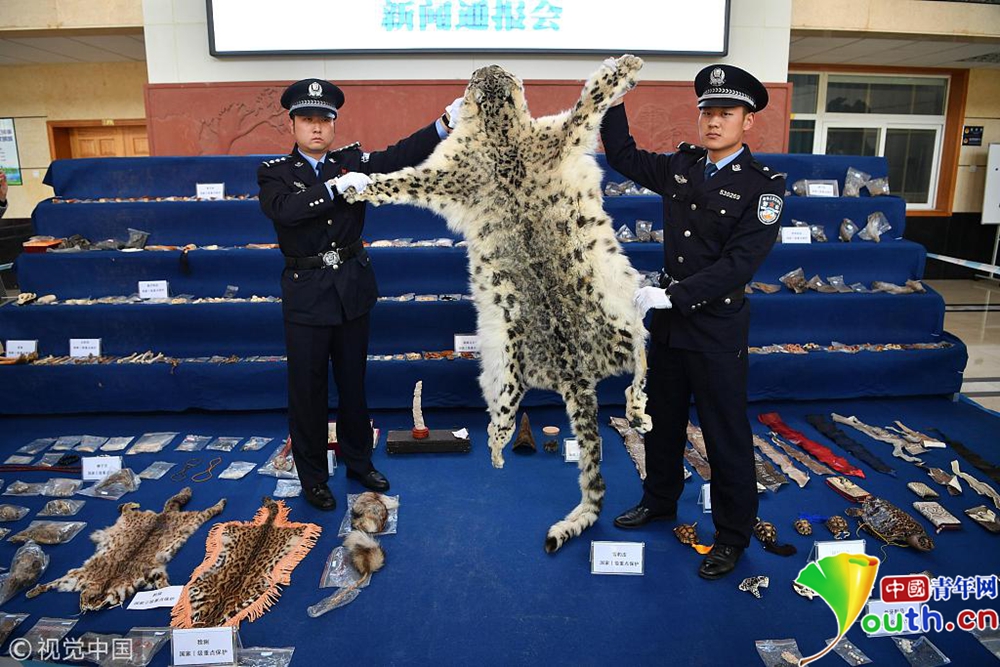 11月23日,現(xiàn)場(chǎng)展示警方查獲的野生動(dòng)物制品。當(dāng)日,昆明市森林公安局向媒體通報(bào),破獲一系列特大非法收購(gòu)出售珍貴瀕危野生動(dòng)物及其制品案件。