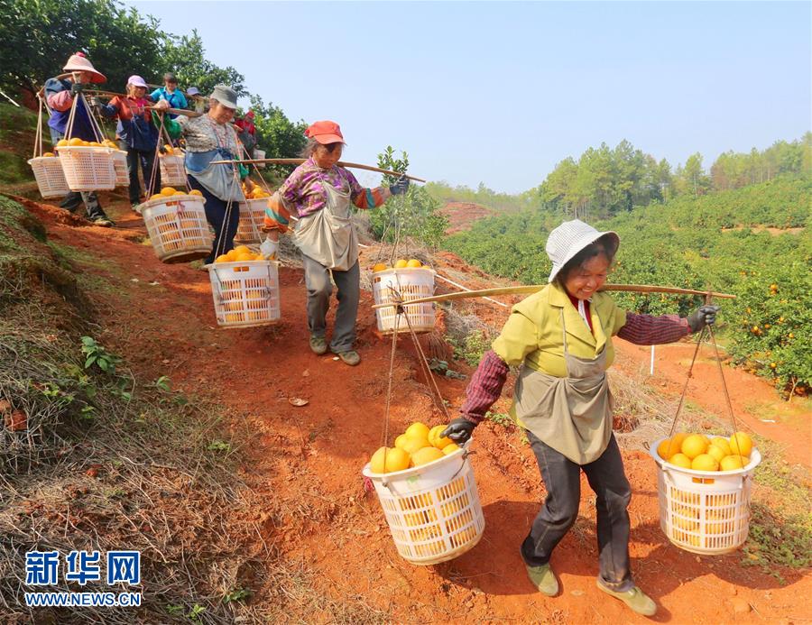 11月23日,于都縣新陂鄉(xiāng)的果農(nóng)在挑運(yùn)臍橙。