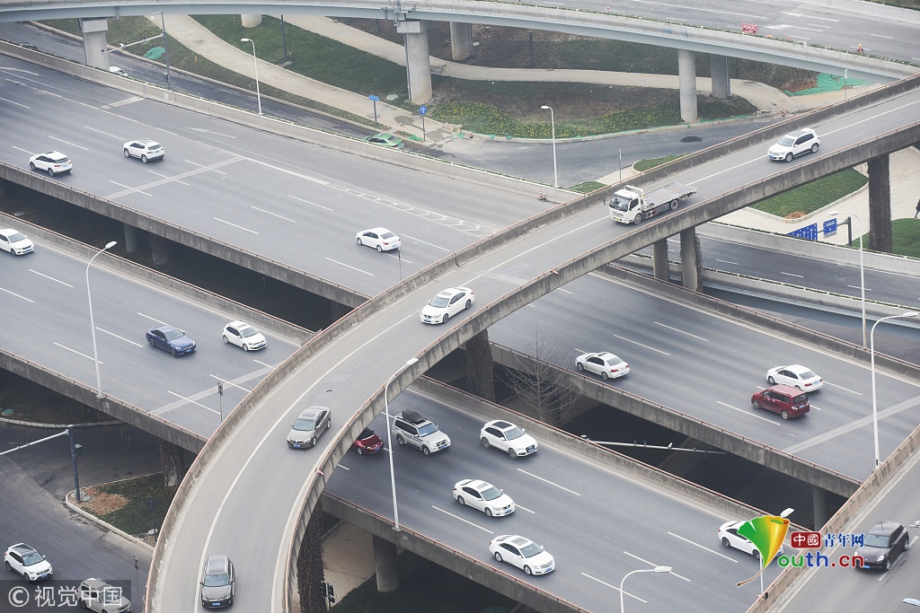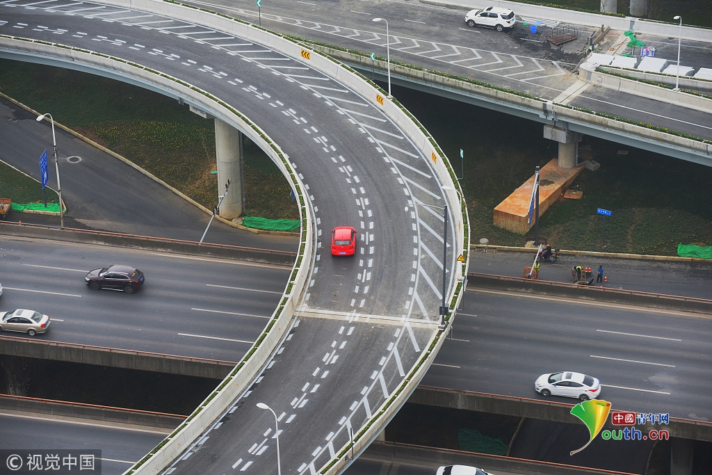 2018年11月23日,成都,俯瞰整個嬌子立交的全貌:12條匝道已經(jīng)完工,道路標線、路面路況、指示牌都是全新的,不時有車輛在三環(huán)路和成龍路之間轉(zhuǎn)換。