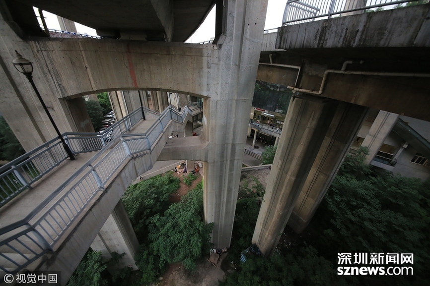 2018年5月29日,重慶,魔幻重慶又雙叒叕放大招!還有一個(gè)獨(dú)特的亮點(diǎn),重慶軌道交通3號(hào)線銅元局站,出口由一段長(zhǎng)梯銜接上方立交橋和下方的路面,與全國(guó)最高城市立交橋蘇家壩立交組成了獨(dú)特風(fēng)景,許多游客專門趕來(lái)拍照。