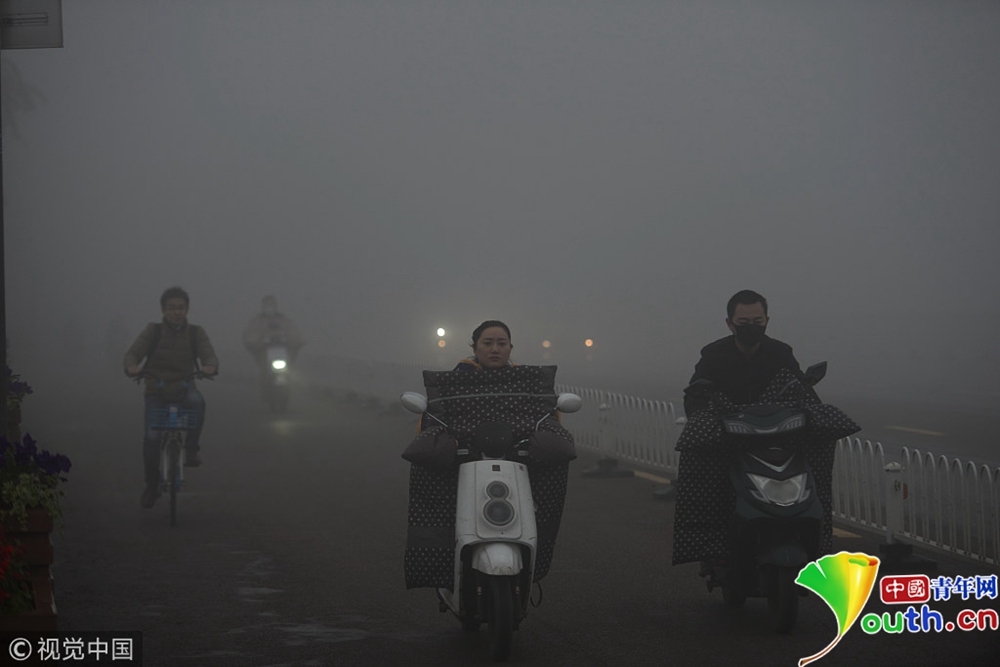 全國(guó)多地出現(xiàn)大霧天氣 市民霧中穿行
