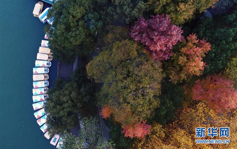 一排游船停泊在湖南烈士公園年嘉湖湖畔(11月25日無(wú)人機(jī)拍攝)。 新華社記者 李尕?cái)z