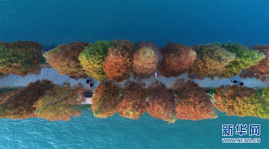 游客行走在湖南烈士公園年嘉湖的游道上(11月25日無人機(jī)拍攝)。新華社記者 李尕?cái)z