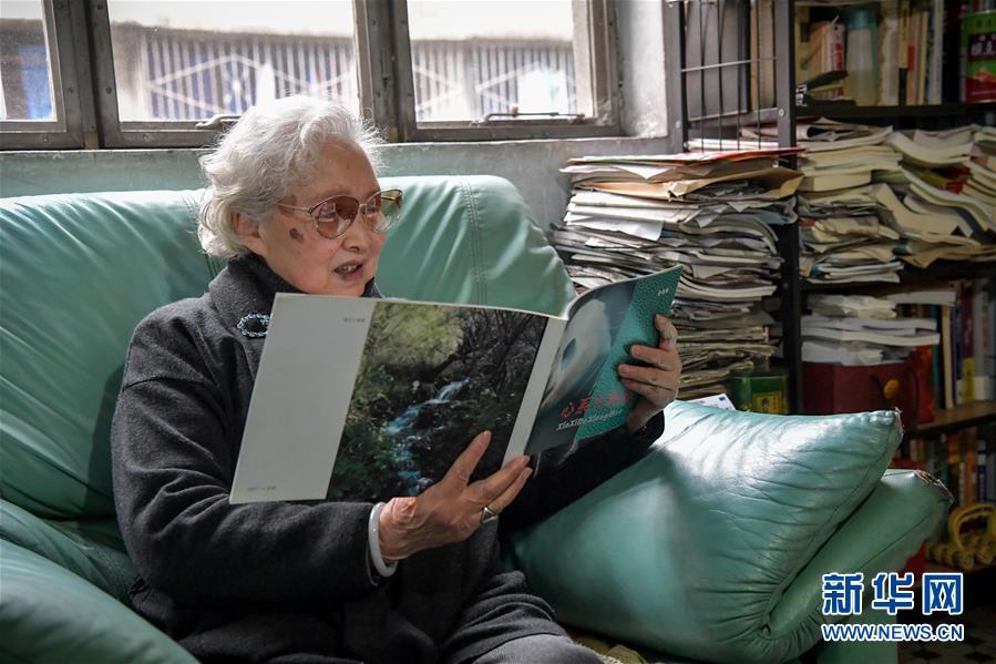 11月27日,金勖琪在四川成都的家中翻看印有她拍攝的照片的畫冊。大熊貓,古老的物種,世界級“萌寵”。有一位84歲的老人,四十年前曾身挎相機與熊貓親密接觸六年多,公開發(fā)表了一千多張熊貓照片,把熊貓介紹給全球的讀者,被國內(nèi)外的朋友親切地稱為“熊貓小姐”。她就是金勖琪,新華社第一代熊貓攝影師。新華社記者 張超群 攝