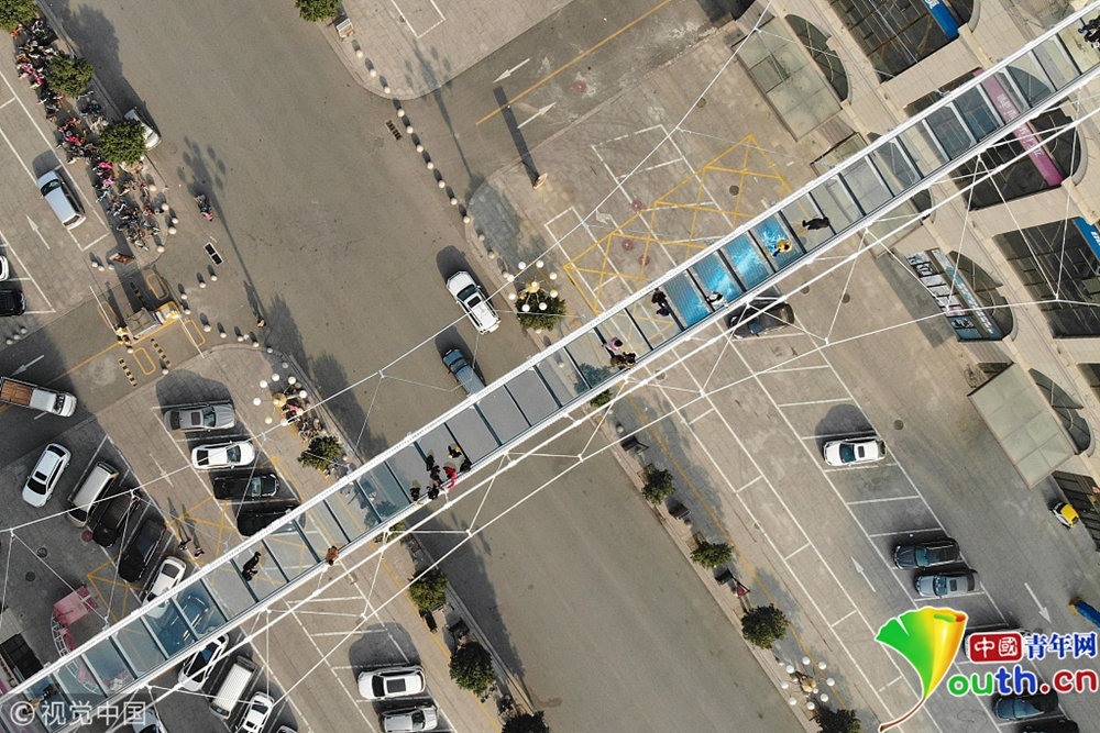 據(jù)現(xiàn)場(chǎng)的檢票工作人員介紹,這座玻璃吊橋是今年10月1日正式對(duì)外開(kāi)放,每逢周末都會(huì)吸引很多人前來(lái)體驗(yàn),成了當(dāng)?shù)匾蛔熬W(wǎng)紅橋”。
