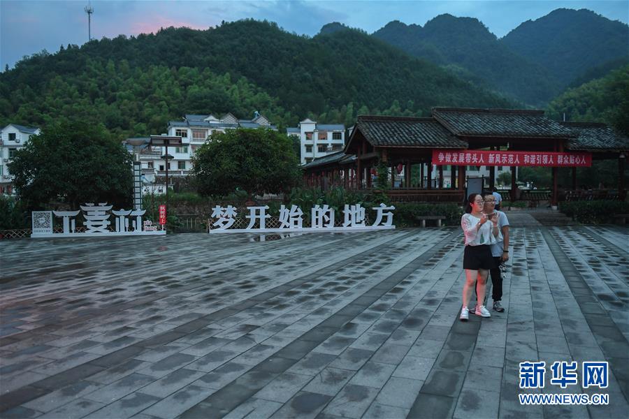 游客在下姜村的小廣場(chǎng)游覽(2017年8月9日攝)。