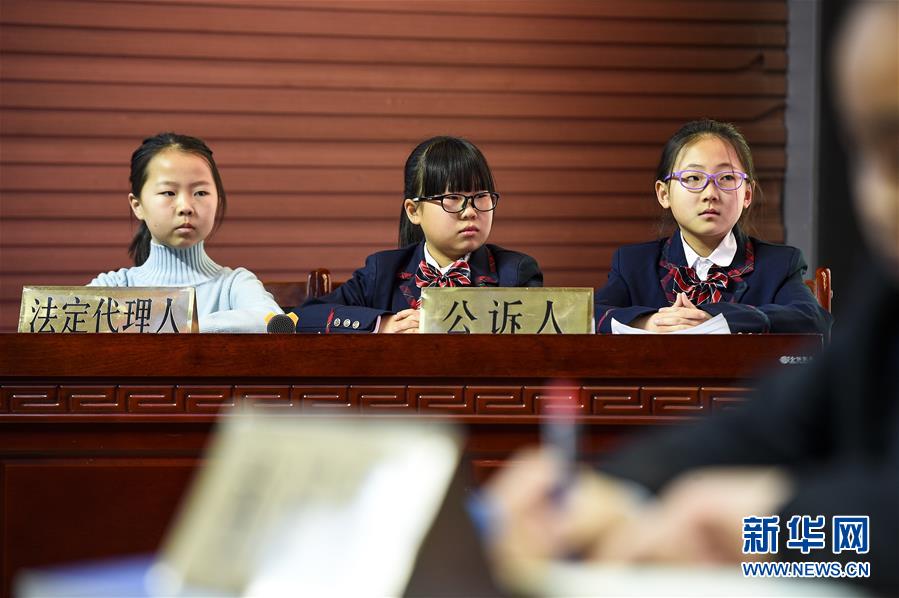 12月3日,銀川市實(shí)驗(yàn)小學(xué)的學(xué)生在憲法日主題活動(dòng)中體驗(yàn)?zāi)M法庭。國(guó)家憲法日到來之際,各地學(xué)校紛紛舉辦主題宣講活動(dòng),對(duì)學(xué)生開展法治教育,幫助孩子們了解憲法知識(shí)。新華社發(fā)(馮開華 攝)