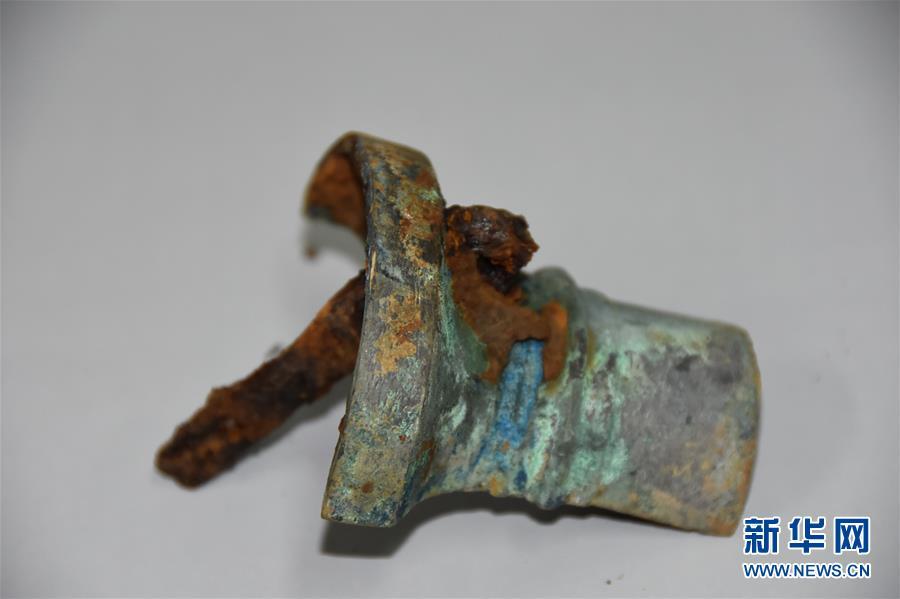 吳山祭祀坑內(nèi)出土的祭祀用的青銅車(chē)軎(12月7日攝)。 新華社記者都紅剛攝