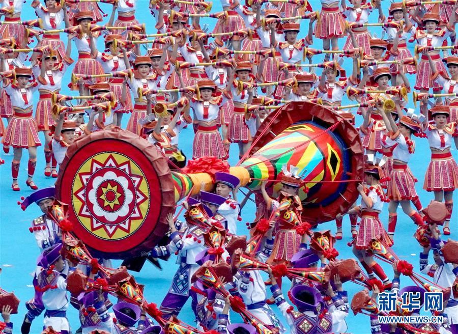 12月10日,廣西壯族自治區(qū)成立60周年慶祝大會在廣西體育中心隆重舉行。這是慶祝大會上的群眾文藝表演。 新華社記者 陳建力 攝