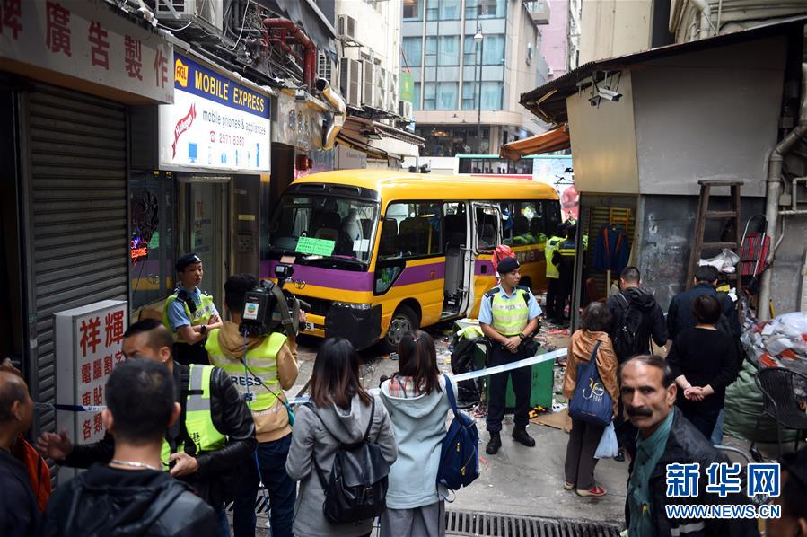 這是12月10日在香港北角拍攝的事故現(xiàn)場(chǎng)。 12月10日下午2時(shí)左右,香港北角發(fā)生車(chē)禍,一輛校巴沖上行人路。 新華社記者 盧炳輝 攝