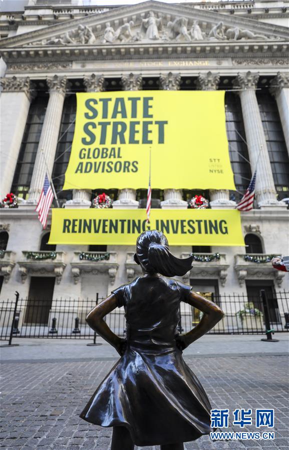 這是12月10日在美國(guó)紐約證券交易所前拍攝的“無畏女孩”銅像。 新華社記者 王迎 攝