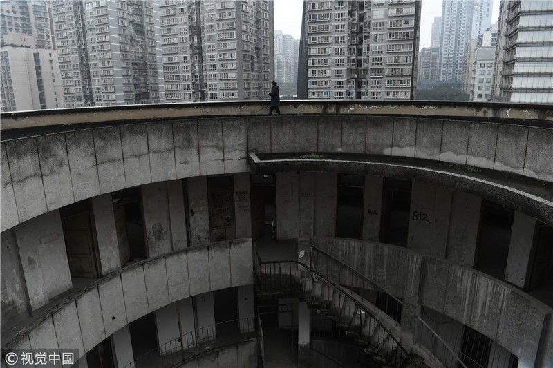 2018年12月6日,重慶江北紅旗河溝汽車站內,有一棟獨特的八層圓環(huán)狀建筑,底層每天有不少進出站的客車通行。