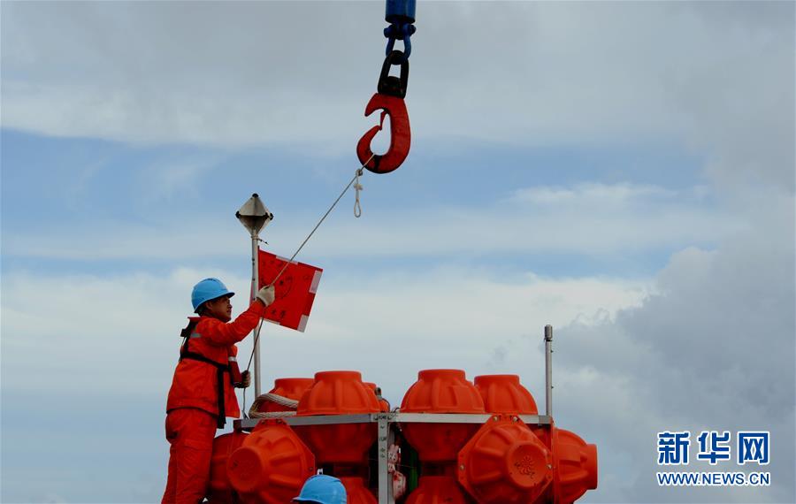 考察隊員對“彩虹魚”著陸器進行掛鉤作業(yè)(12月10日攝)。 由上海海洋大學和西湖大學聯(lián)合組成的“彩虹魚”科考團隊,12月11日在全球最深的海溝——馬里亞納海溝成功完成兩臺“彩虹魚”第二代著陸器的萬米級海試,深度分別為10918米和10899米。 新華社記者 張建松 攝