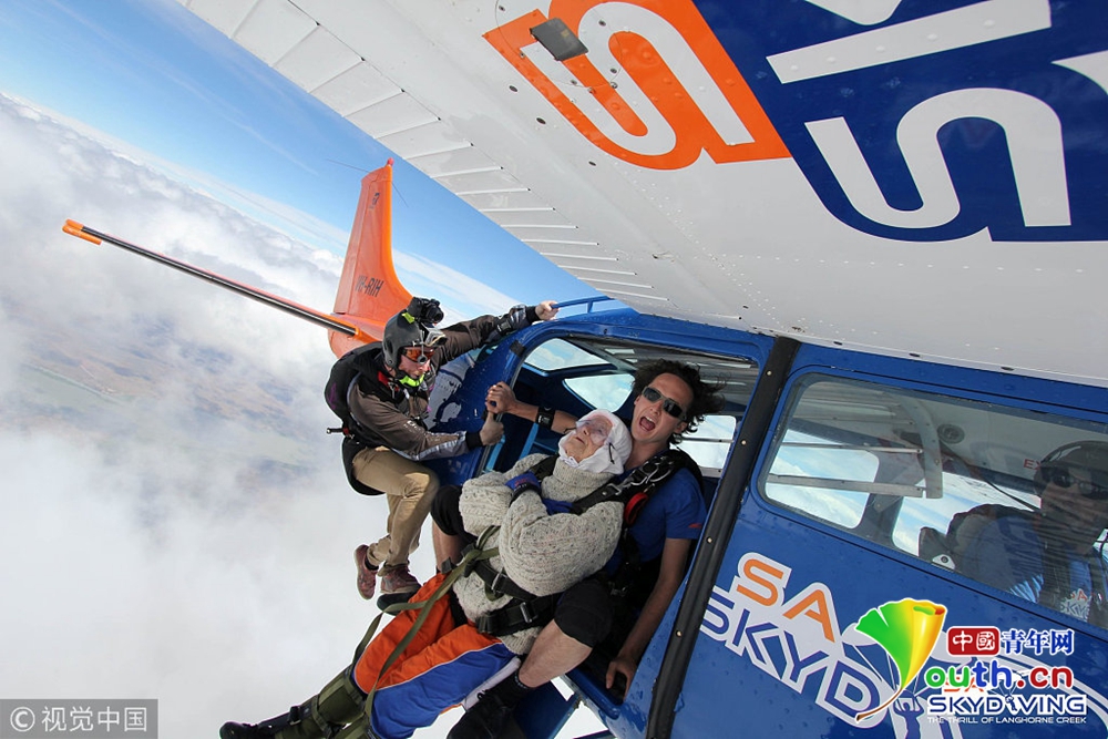澳洲102歲奶奶玩高空跳傘 背后原因很暖心