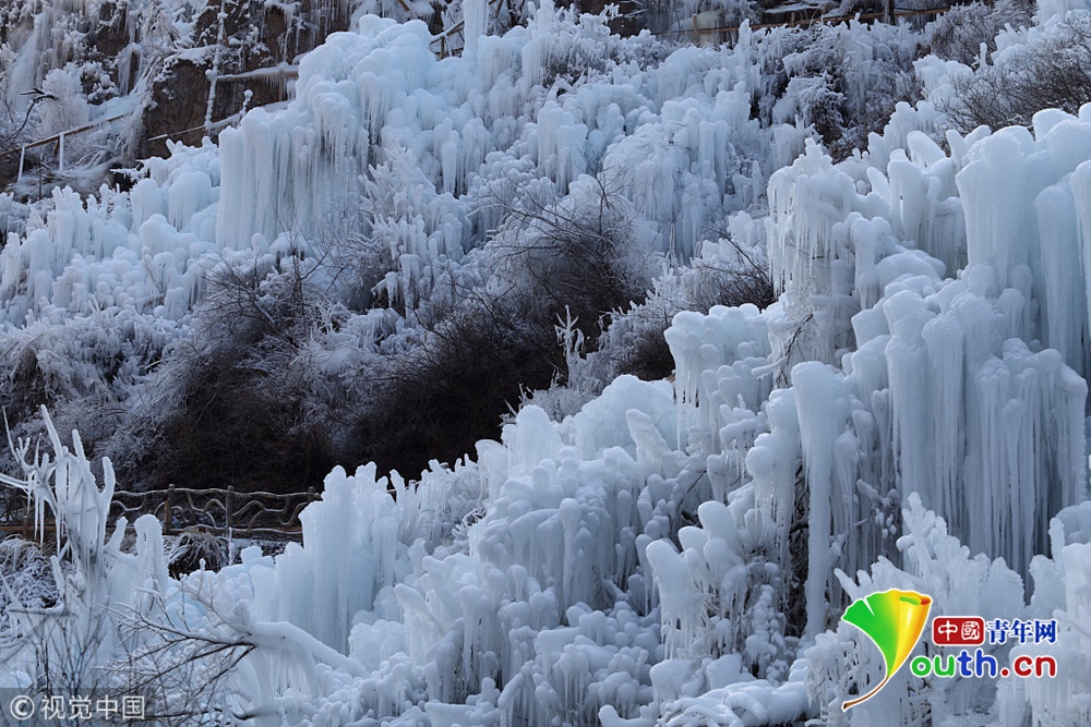 炭廠村神泉峽景區(qū)大面積人工冰瀑形成美麗的冰瀑景觀,預計12月19日正式向游客開放。
