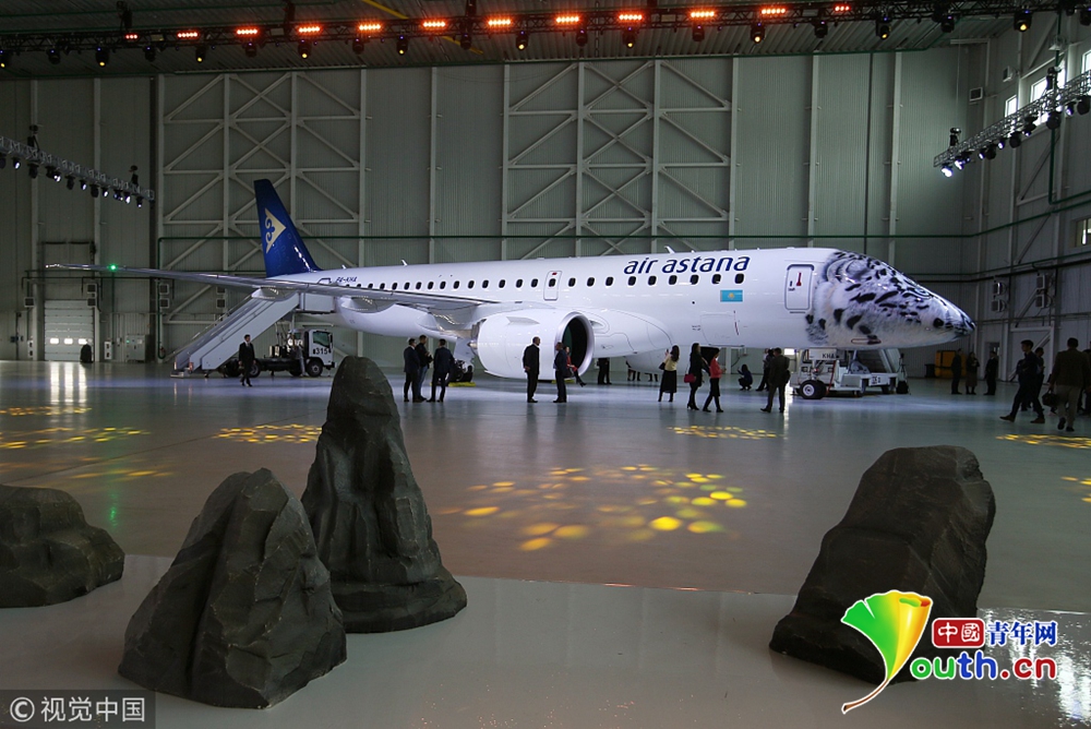 當(dāng)?shù)貢r(shí)間2018年12月14日,哈薩克斯坦阿斯塔納,巴西航空工業(yè)公司E190-E2飛機(jī)在阿斯塔納國(guó)際機(jī)場(chǎng)亮相。