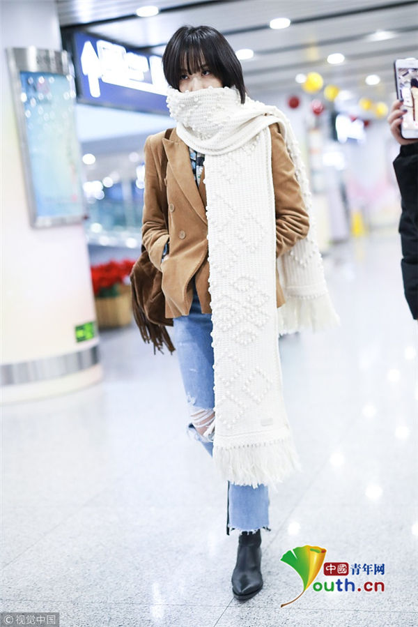 2018年12月16日,宋茜從上海機(jī)場(chǎng)飛往北京機(jī)場(chǎng)。她身穿短款薄外套,搭配破洞牛仔褲,要風(fēng)度不要溫度,一路低頭前行悶悶不樂似遇愁心事,到了北京之后她又裹起了厚圍巾,但依舊悶悶不樂。
