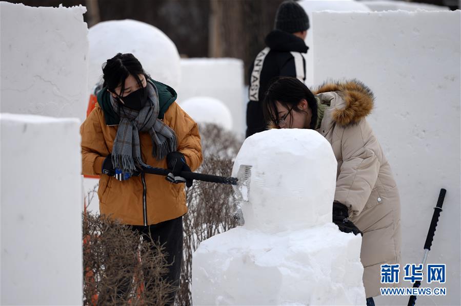 國內(nèi)最大的雪雕盛會太陽島雪博會正在緊鑼密鼓建設(shè)中,雪雕師正在精雕細(xì)刻打磨中。