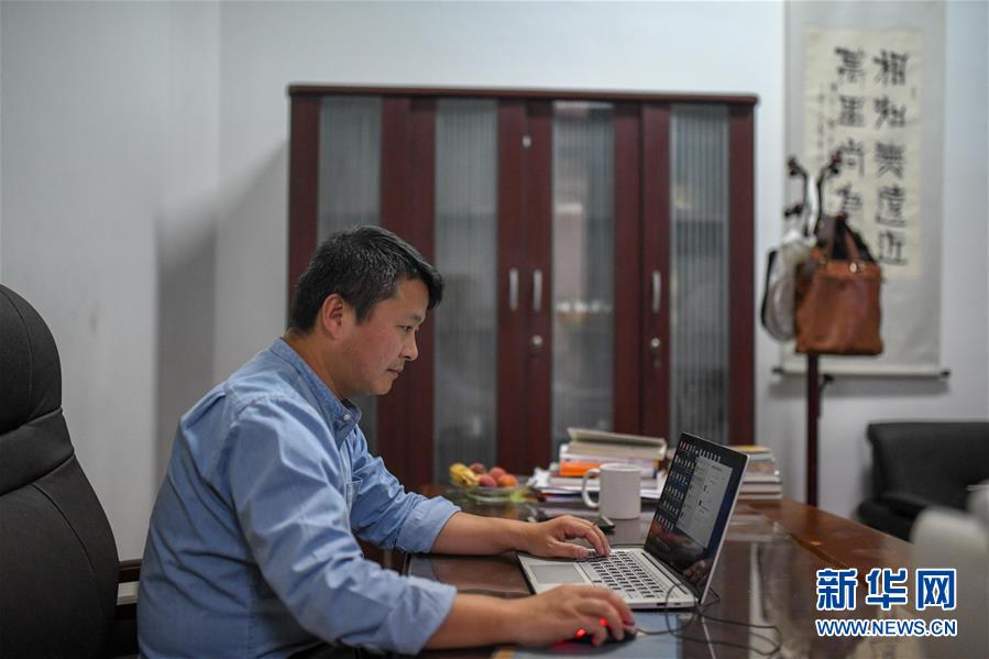2018年4月12日,在埃及首都開羅,泛阿網(wǎng)絡(luò)公司聯(lián)合創(chuàng)始人、中東北非總經(jīng)理馬強(qiáng)在辦公室工作。