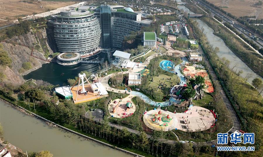12月18日無人機(jī)拍攝的世茂精靈之城主題樂園。 當(dāng)日,“世茂精靈之城主題樂園奇幻親子嘉年華開幕暨上海公益基地揭牌儀式”在位于上海佘山國家旅游度假區(qū)的世茂精靈之城主題樂園一期(“深坑秘境”)正式啟動?!吧羁用鼐场迸徤虾Y苌绞烂揠H酒店,除了擁有俯瞰“深坑”的玻璃棧道外,還包括360度崖壁大擺錘、精靈樹屋、沙漠考古、夢幻水域和蟲蟲世界等項(xiàng)目,帶來親子游玩新體驗(yàn)。 新華社記者 方喆 攝