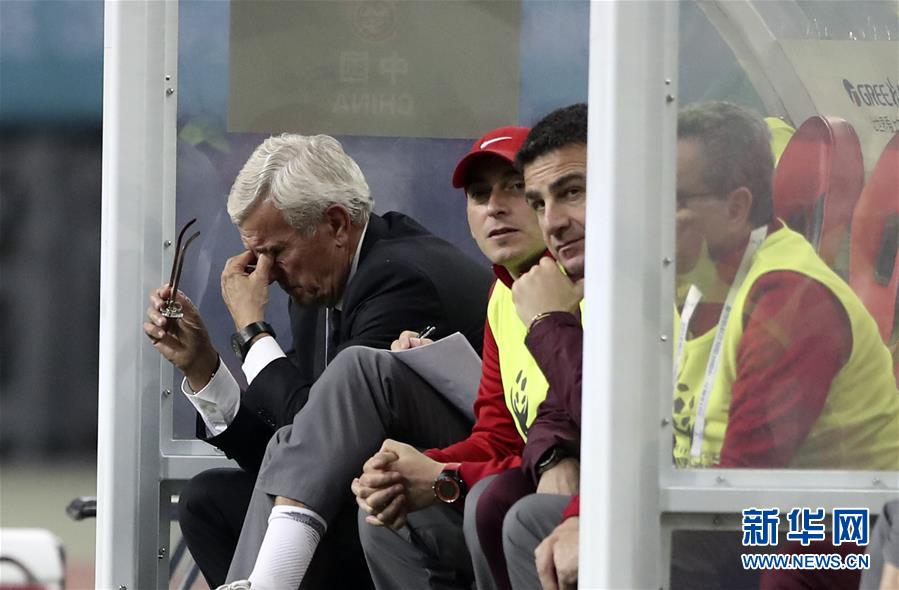 圖為2018年3月22日,中國(guó)隊(duì)主教練里皮(左一)在2018中國(guó)杯國(guó)際足球錦標(biāo)賽中球隊(duì)失球后的資料照片。 新華社記者曹燦攝