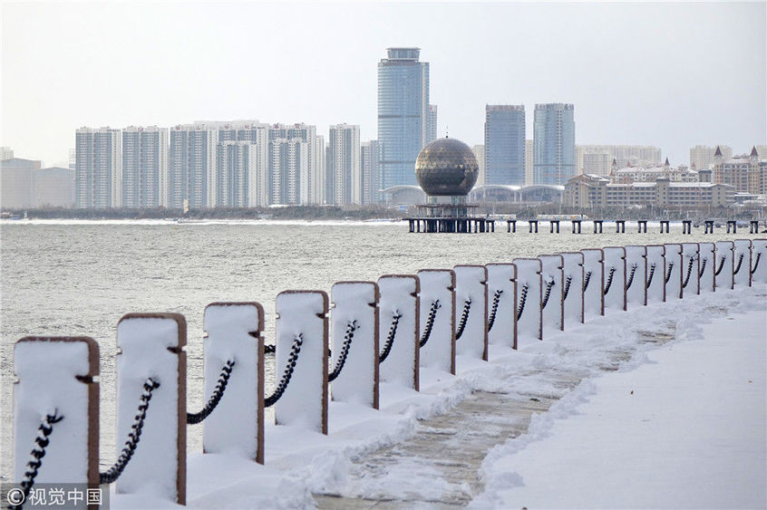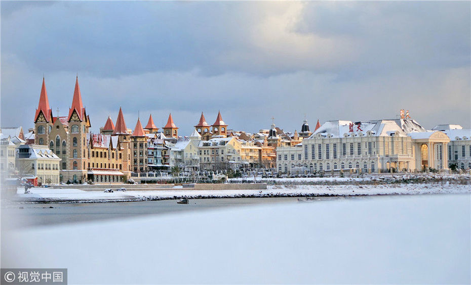 2018年12月7日,山東煙臺,雪后的海濱景色。當(dāng)日煙臺迎來今冬首場降雪,海濱建筑在大雪的裝點(diǎn)下,形成海濱城市獨(dú)有的美麗雪景。地處膠東半島的煙臺,冬季降雪量遠(yuǎn)高于地理位置相近的其他地區(qū),形成了獨(dú)特的海濱雪城,是中國著名的“雪窩”。唐克/視覺中國