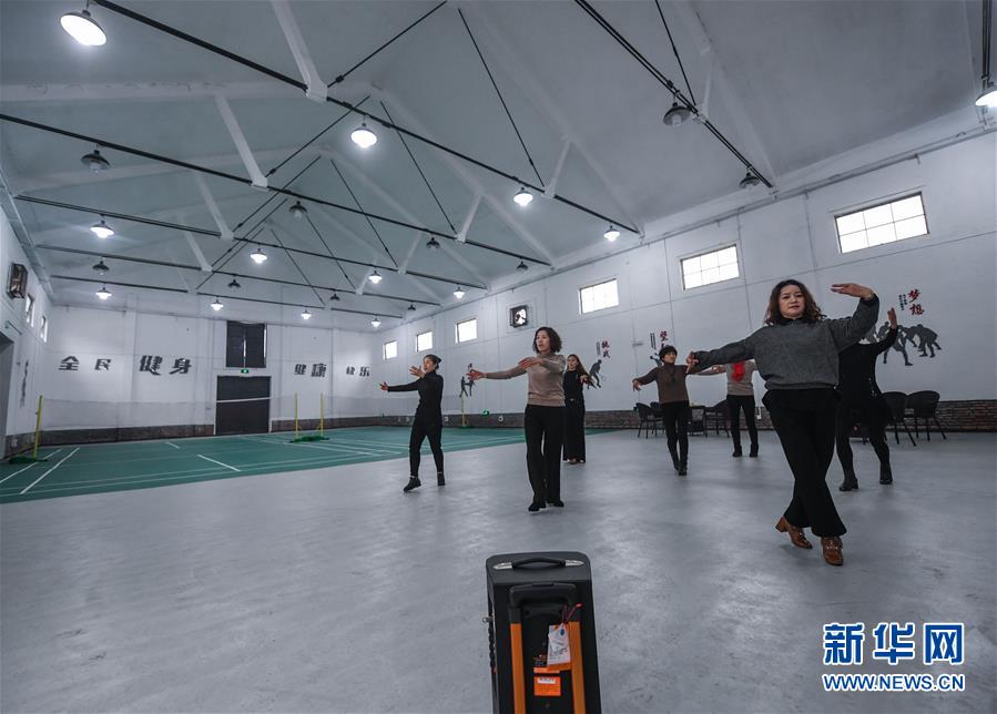 12月20日,村民們在舊糧倉改建的室內(nèi)體育館內(nèi)排練廣場舞。 新華社記者 徐昱 攝