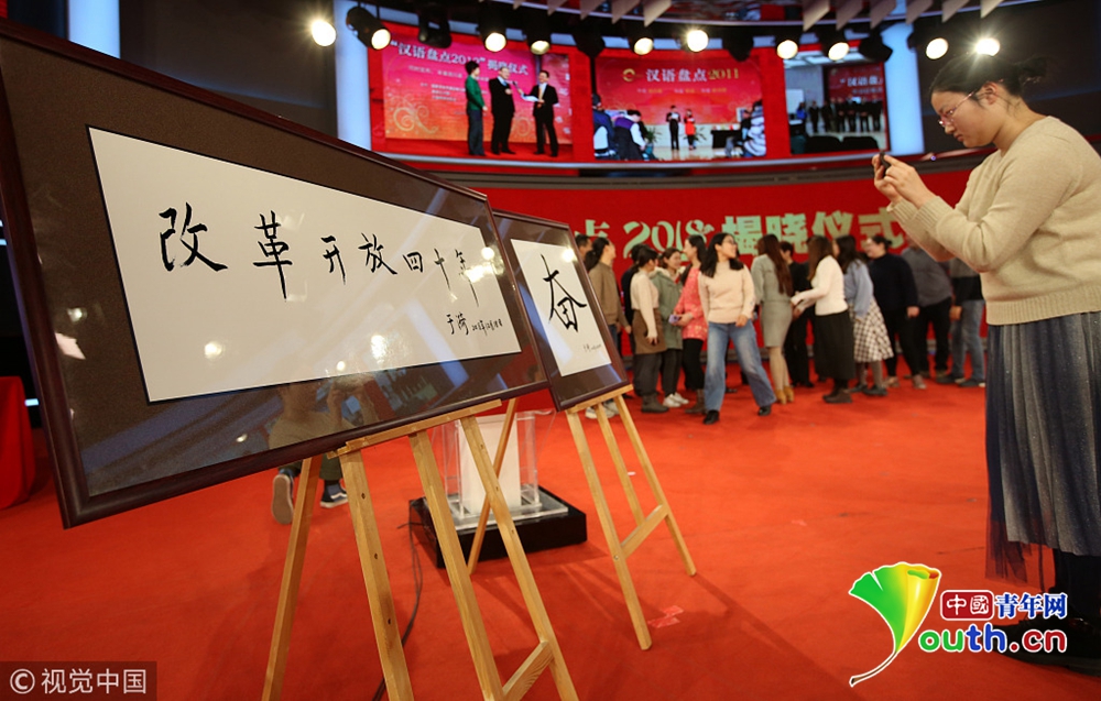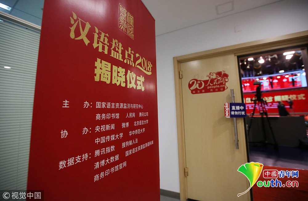 12月20日,國家語言資源監(jiān)測與研究中心、商務(wù)印書館、央視新聞等單位聯(lián)合舉辦的“漢語盤點2018”揭曉儀式在北京舉行。圖片來源:視覺中國