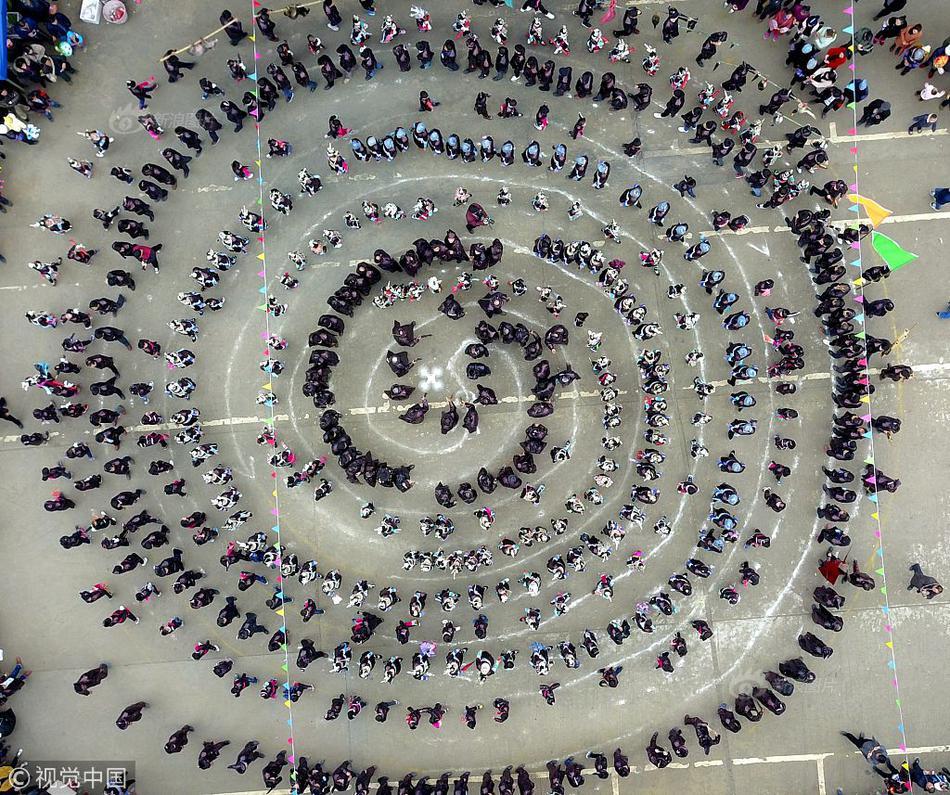 11月20日?qǐng)?bào)道,2018年11月19日,侗族同胞在參加貴州省從江縣慶云鎮(zhèn)“凍魚節(jié)”踩歌堂。(無人機(jī)拍攝)2018年11月19日,貴州省從江縣慶云鎮(zhèn)境內(nèi)的石姓侗族同胞迎來傳統(tǒng)一年一度的“凍魚節(jié)”,當(dāng)?shù)囟弊逋碇?jié)日盛裝舉行祭薩、踩歌堂、賽侗歌,慶祝豐收,祈福來年風(fēng)調(diào)雨順,五谷豐登。