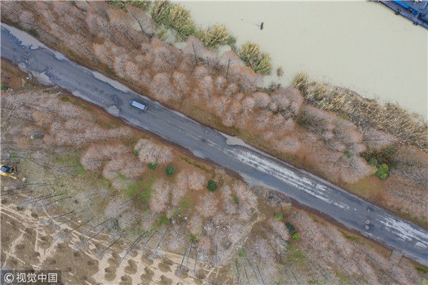2018年12月27日,江蘇淮安,航拍京杭大運(yùn)河淮安段冬日景色。吳揚(yáng)/視覺中國