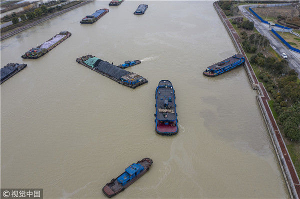 2018年12月27日,江蘇淮安,航拍京杭大運(yùn)河淮安段冬日景色。